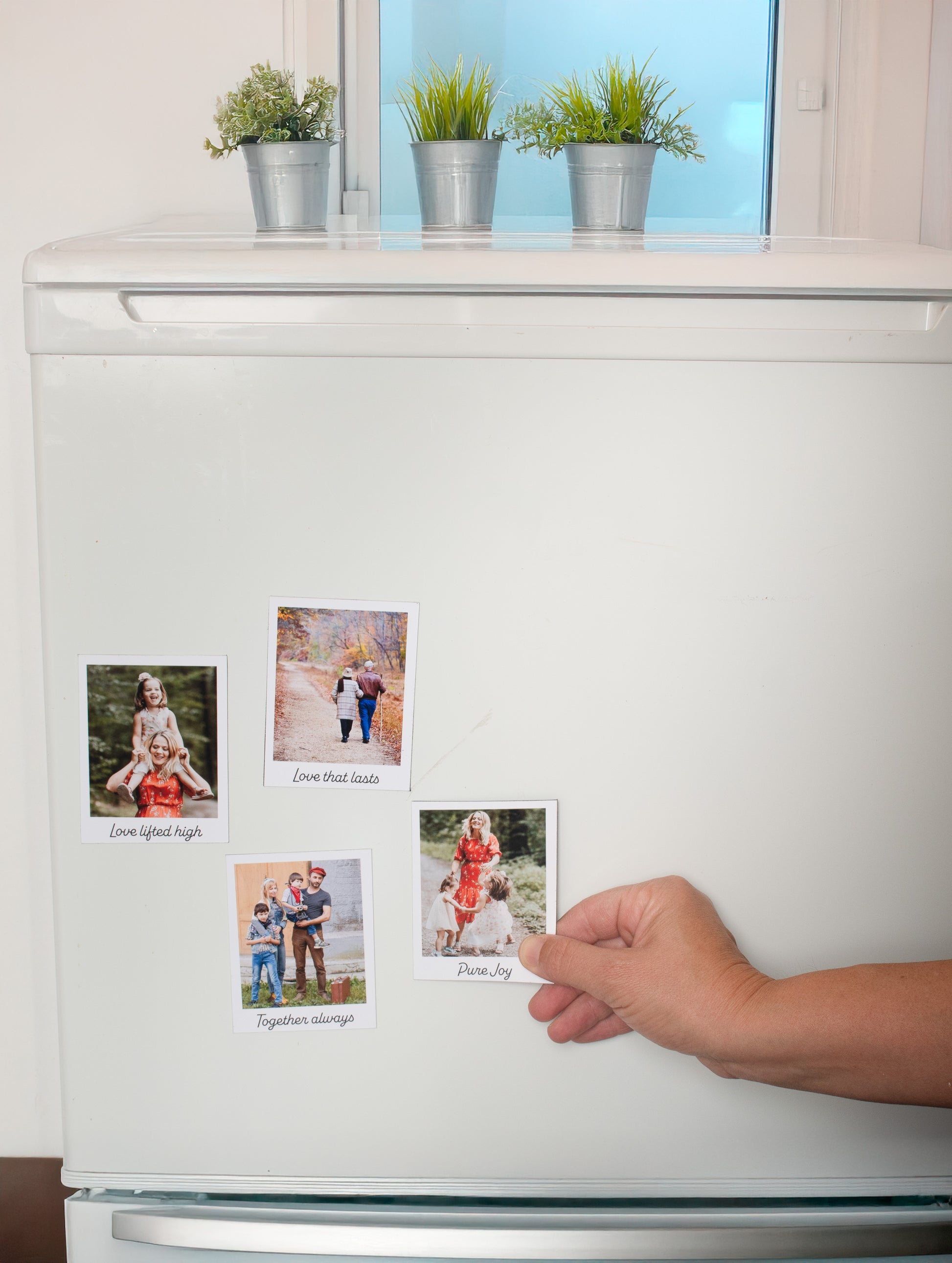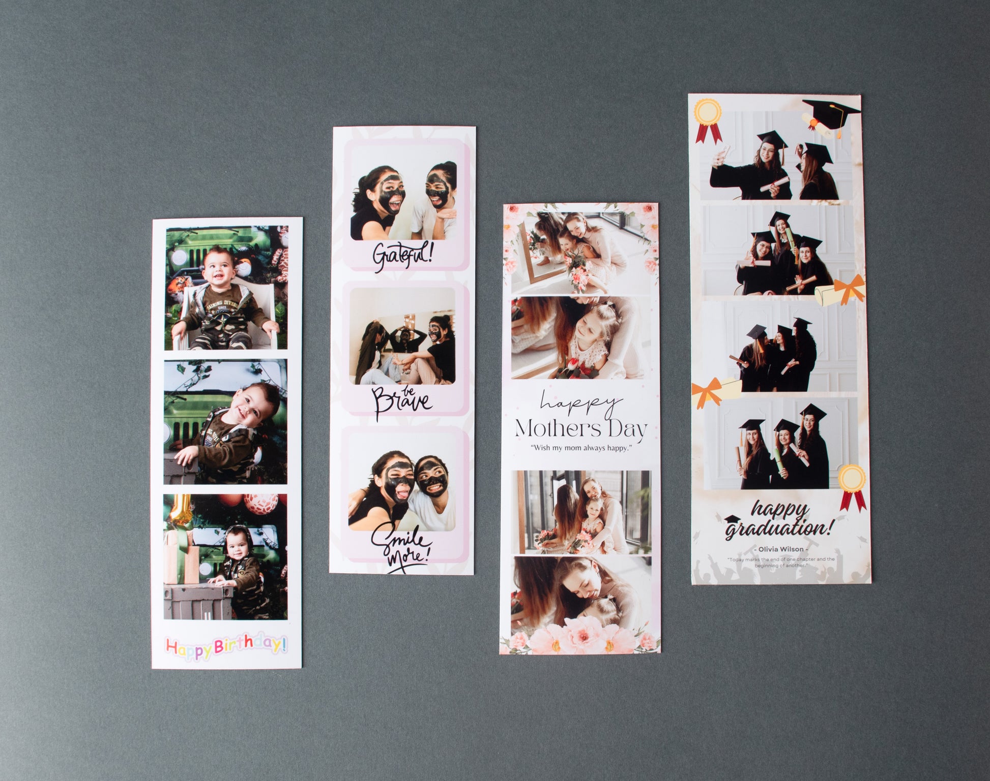 Tell your story, one frame at a time. This sleek vertical strip holds four photos printed on premium glossy paper with a strong magnetic back — perfect for photo-booth moments, milestones, or gifts.